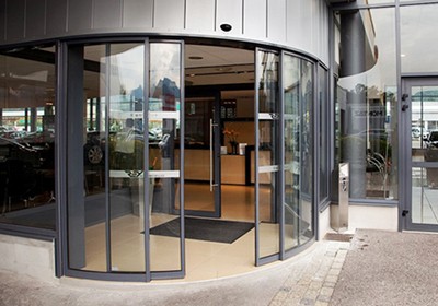 درب های هلالی درب های اتوماتیک هلالی-Curved Automatic Door (نیم گرد و خم): درب های اتوماتیک نیم گرد و خم دارای ظرافت، زیبایی و جذابیت خاصی بوده و جلوه ای دلپذیر و هارمونیک به اطراف می بخشد که مناسب مکانهای ویژه و خاص می باشد.